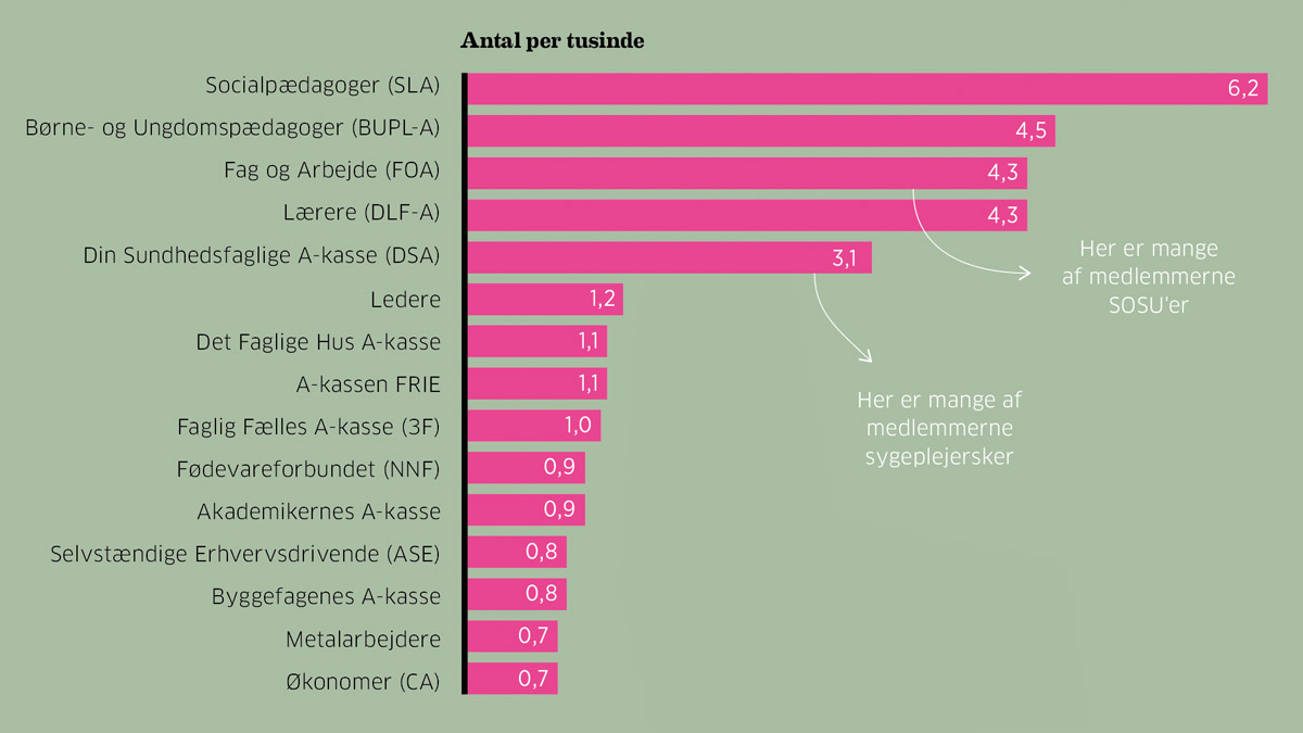 Velfærdssamfundets frontpersonale bliver oftere ramt af stressrelaterede sygdomme end akademikerne i kommunen eller metalarbejderen. Det viser en analyse fra Arbejderbevægelsens Erhvervsråd (AE) lavet i samarbejde med HK. Undersøgelsen beskæftiger sig med stressrelaterede erhvervssygdomme rapporteret mellem 2010-2023.