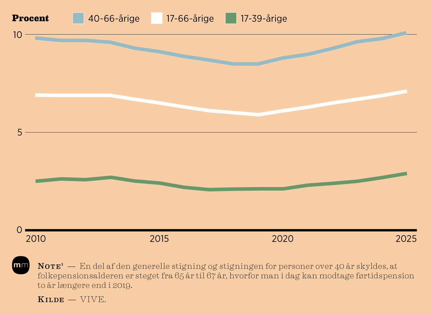 Tre procent af danskerne under 40 år er på førtidspension